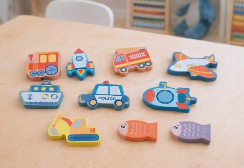 Vláček, auto, letadlo… kluci si s nimi často začnou hrát i mimo desku. Najednou z toho není jen skládání a vkládání, ale i malý příběh.