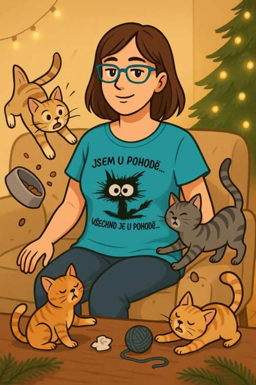 Tohle tričko je totiž přesně typ oblečení, který si obléknete, když máte náročný den, když kolem vás pobíhají děti, vnoučata a zvířata. Každý na vás mluví a něco chce, nebo když je prostě kolem vás chaos, a vy i když jste pocuchaná, si řeknete: Jsem prostě v pohodě, že?