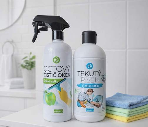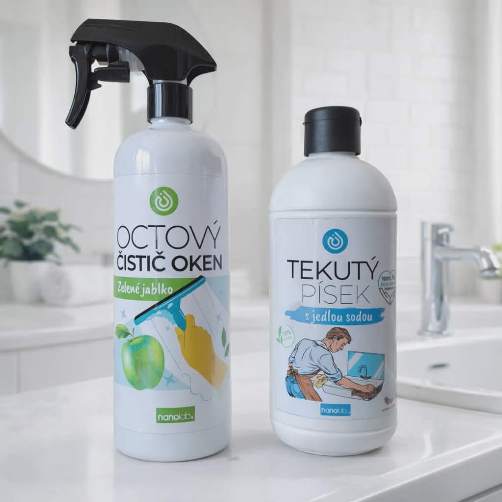 Octový čistič oken Zelené jablko a Tekutý písek s jedlou sodou.
