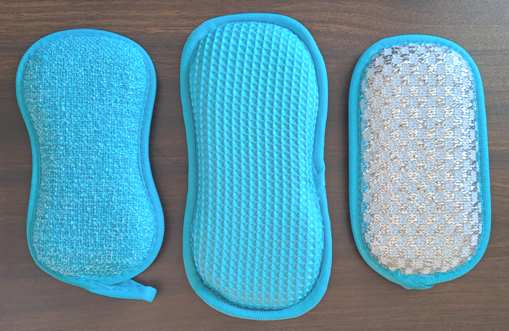 Každá z houbiček má dvě strany - každá s jiným povrchem. Jeden je hrubší – na hrubší nečistoty, a druhá jemnější na setření špíny z povrchu.