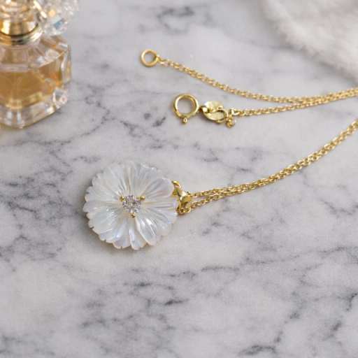 Na eshopu o tomto šperku píší: Přívěsek je zdoben drobným zirkonem o průměru 2 mm a syntetickou perlou v bílé až perleťové barvě, které společně vytvářejí něžný a rafinovaný vzhled. Průměr květinového prvku je 15 mm, což zajišťuje výraznost, ale stále zachovává jemnou eleganci.