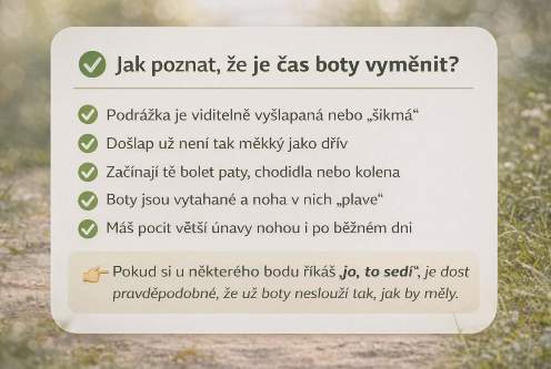 Pokut si u některého bodu říkáte „jo, to sedí“, je dost pravděpodobné, že vaše boty už neslouží tak, jak by měly.