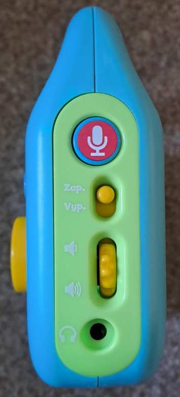 U VTECH na tohle myslí, a i u téhle hračky na boku přístroje najdete kouzelné kolečko na přidání a ubrání hlasitosti, a tlačítko na vypnutí.