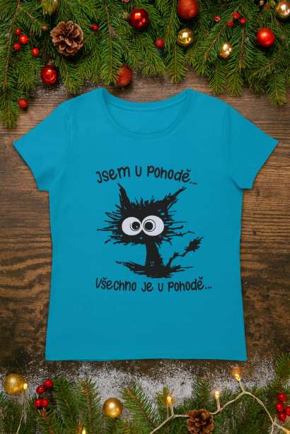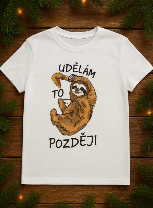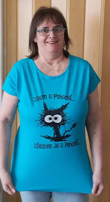 Moje „pohodová trojice“ produktů z Fajntrička – tyrkysové tričko s kočkou „Jsem v pohodě“, bílé lenochodí tričko s lenochodem a nápisem „Udělám to později“ a čepice „Pohodička“ se okamžitě zařadila mezi kousky, které mi dělají radost.